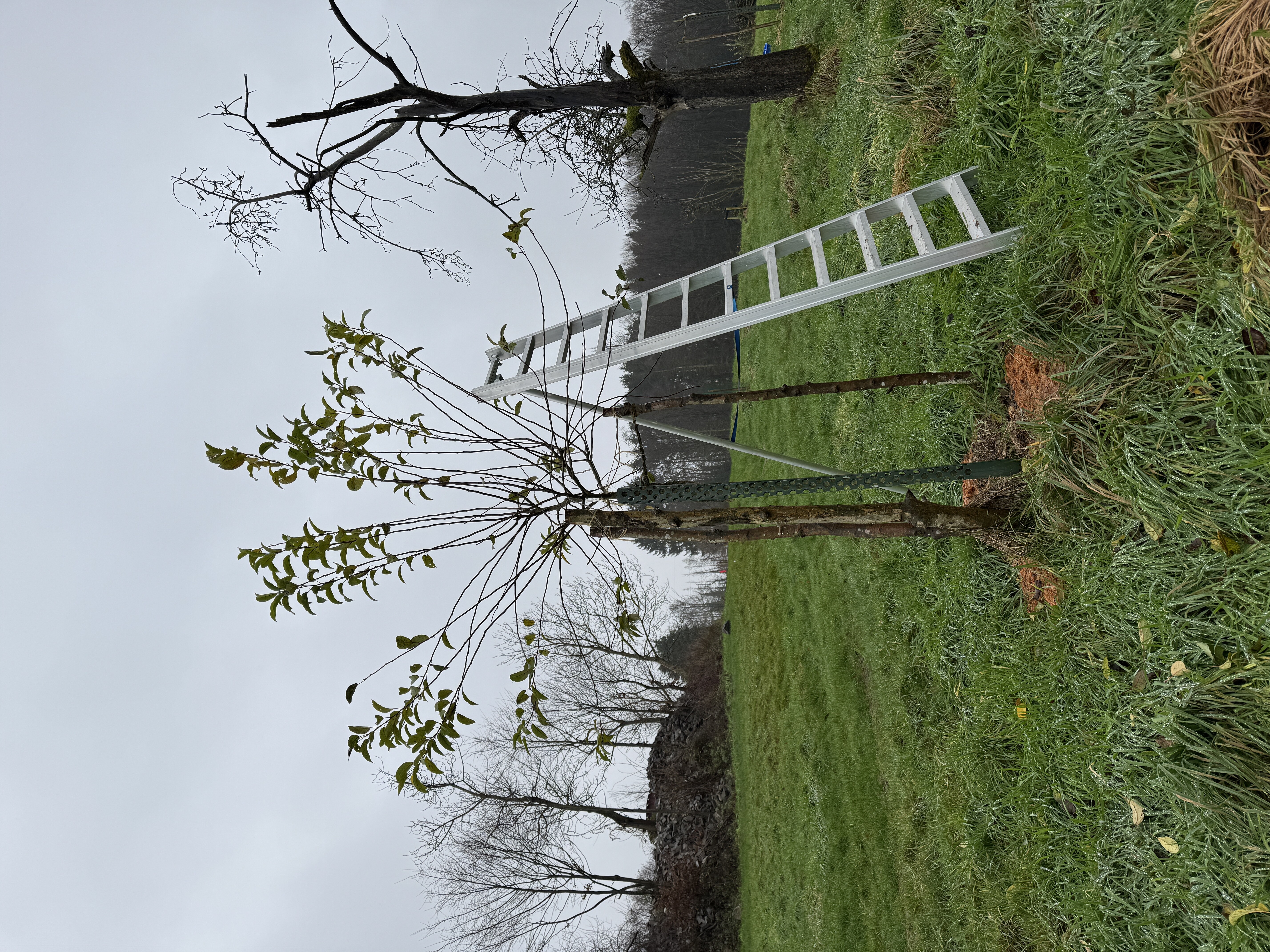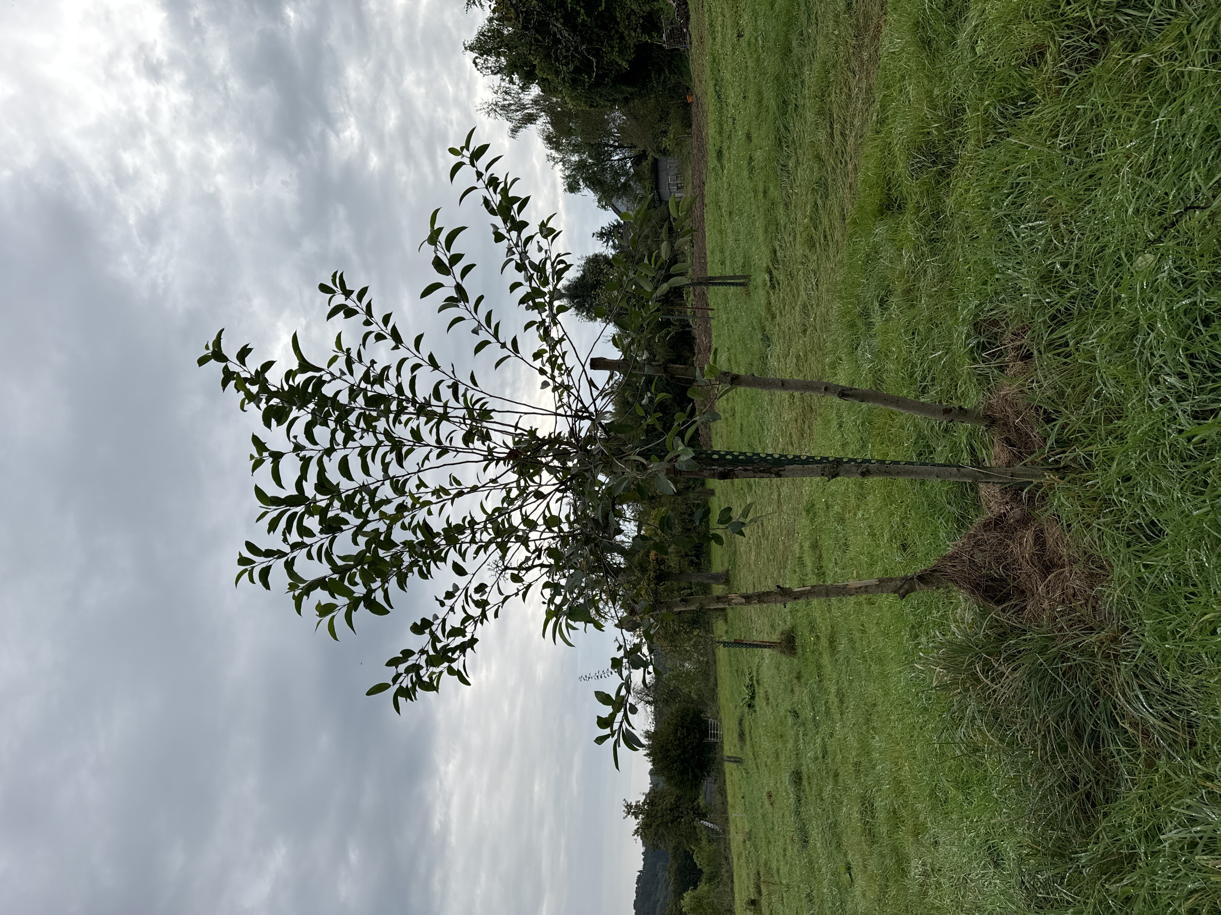 Anfang 2023 gepflanzt. Schönes Beispiel für "schleuderner Wuchs". Daneben steht [[Baum II - Rote Sternrenette]] und [[Baum 040 - Mirabelle von Nancy]].