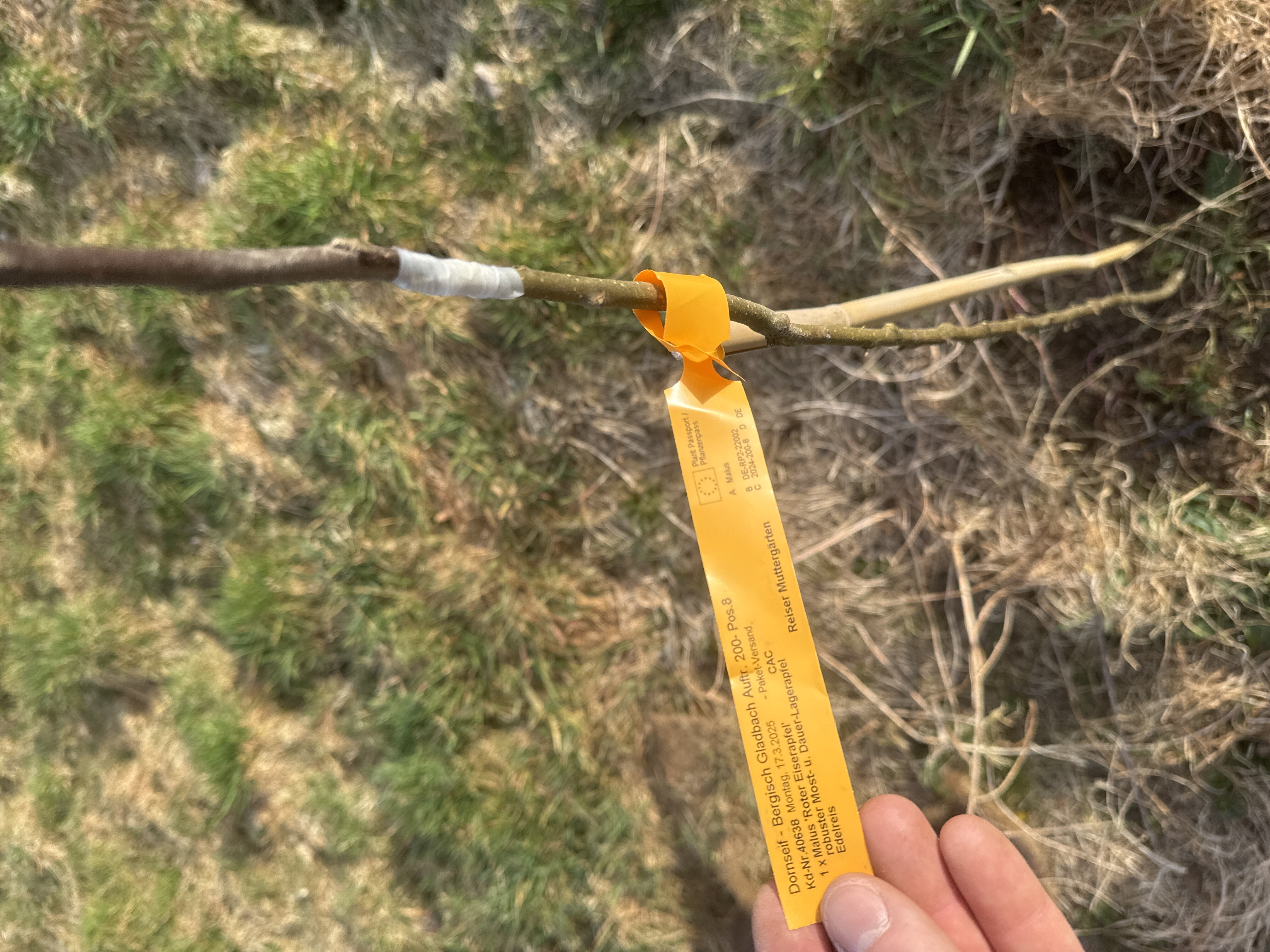 Steht zwischen [[Baum XIV - Klarapfel]] und [[Baum XIII]]. Sämling Anfang 2024 gepflanzt. Am 2025-03-21 [[Roter Eiserapfel]] Edelreis von Ritthaler aufveredelt.