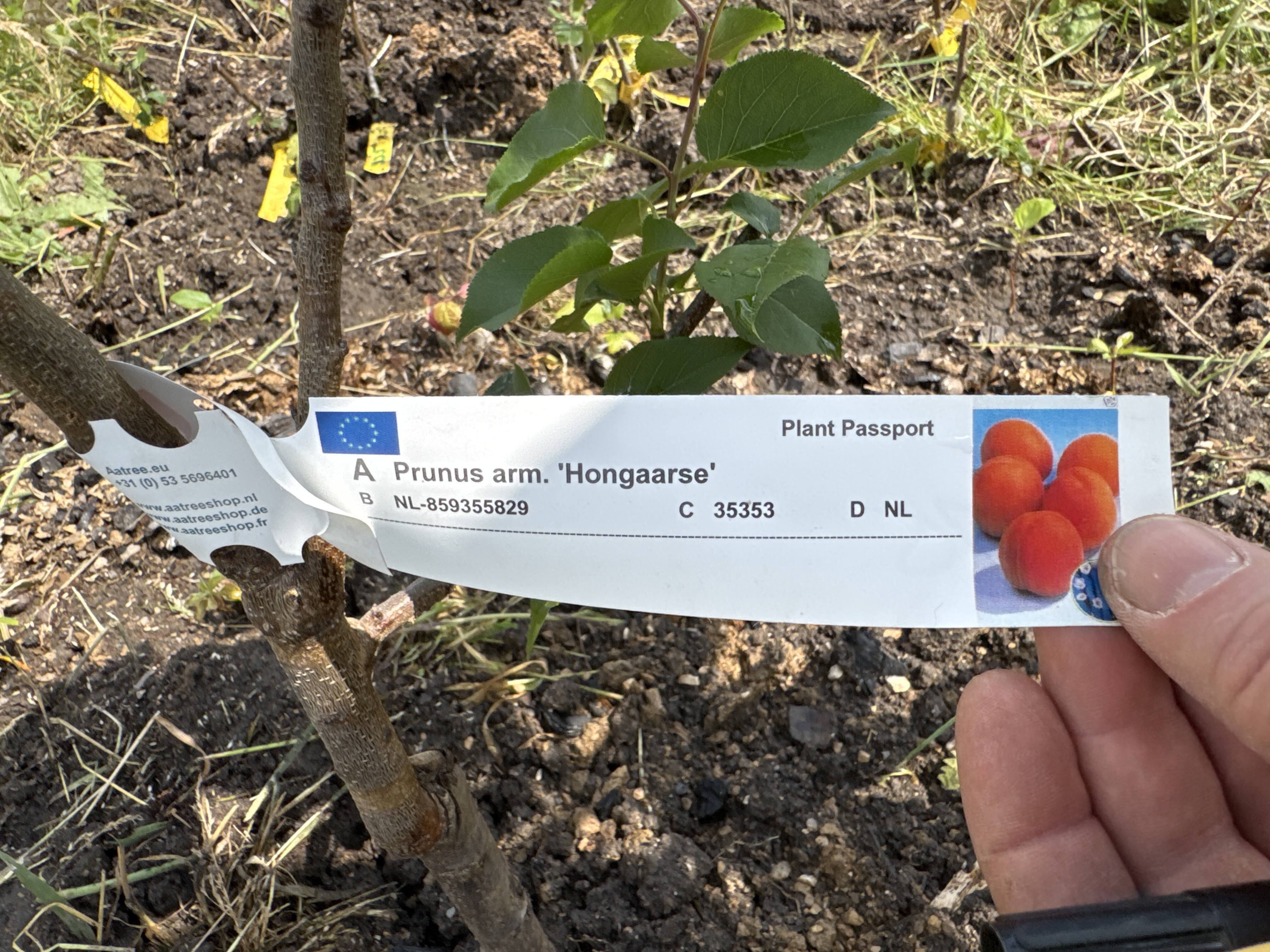 Dies ist ein Heister-Aprikose der Sorte [[Hongaarse]]. Der Baum stammt von Aatree. Der Baum steht seit 2025 im Bongert Baumschule an der Position Gemüsegarten.