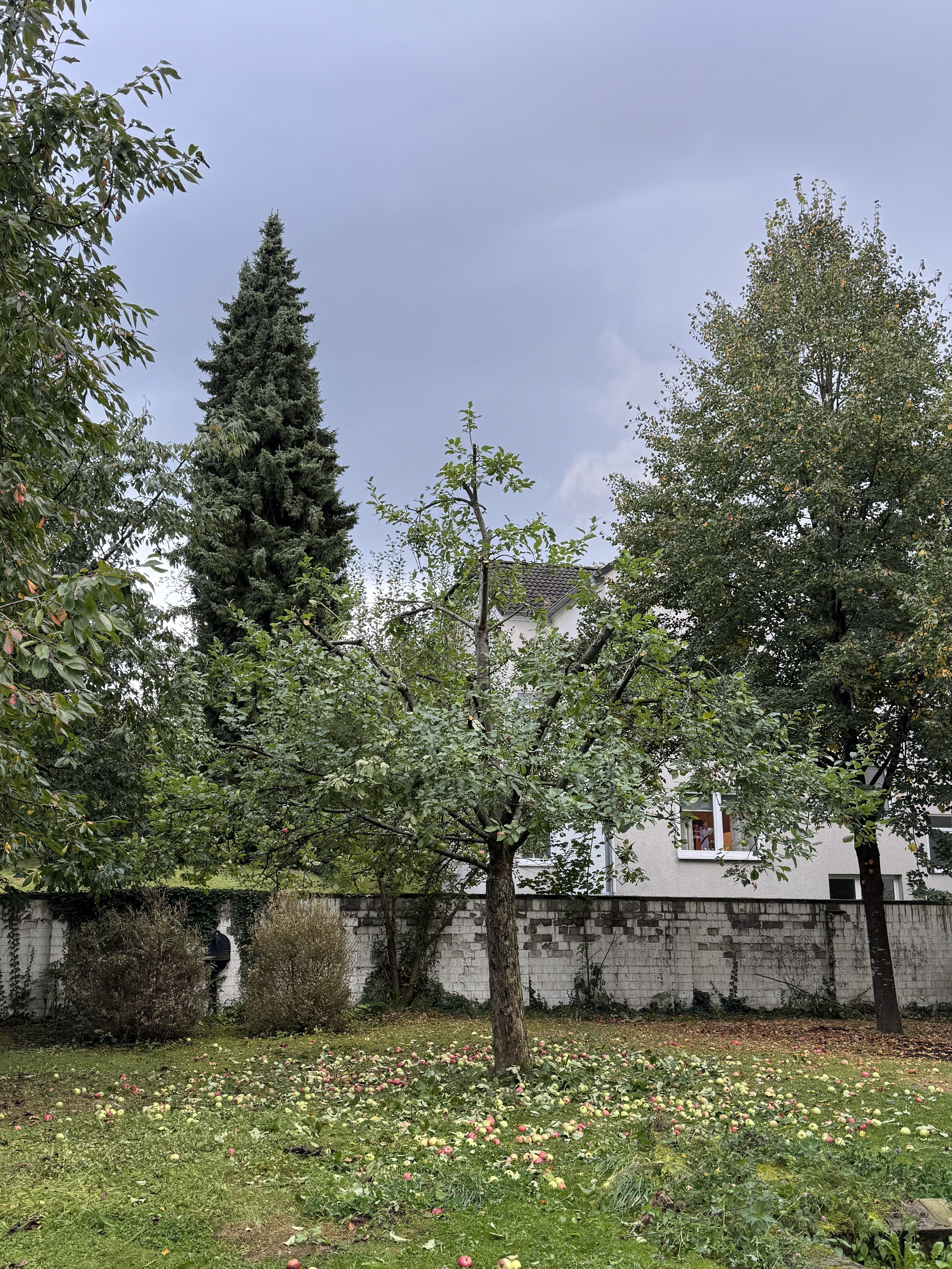 2025-10-07 die am Boden liegenden Äpfel haben sich erstaunlich gut gehalten, Etwa 40 l Ernte gut.