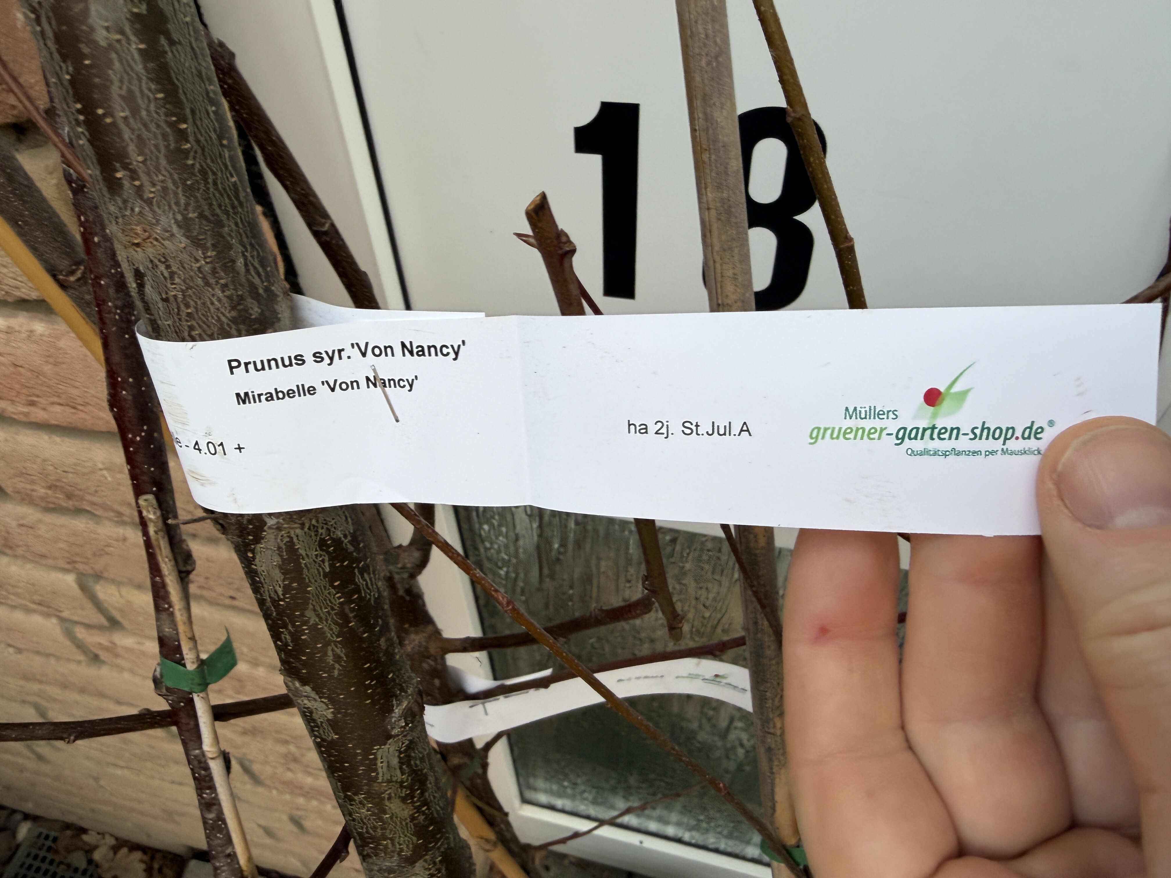 Dies ist ein Halbstamm-[[Mirabelle]] der Sorte [[Mirabelle von Nancy]]. Der Baum stammt von Müllers Grüner Garten Shop. Der Baum steht seit 2025 im Bongert [[Aggerweide2]] an der Position T07.