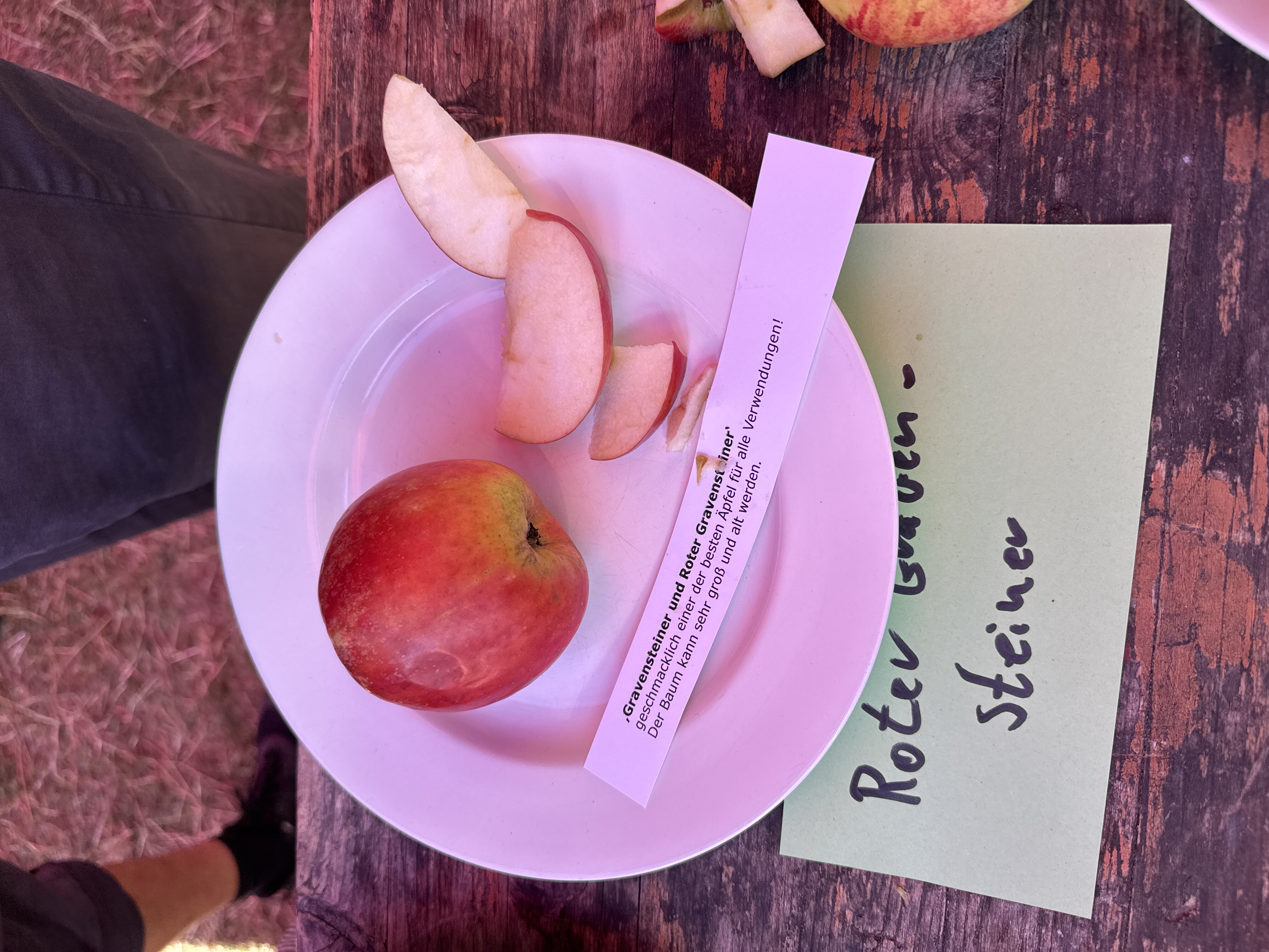Dies ist eine Obstsorte des Genus Apfel. Sie wird bei Wikidata als [Gravensteiner (Q489226)](https://www.wikidata.org/wiki/Q489226) geführt. Die Ernte ist Anfang August. Die Genussreife ist Anfang August. Die Wüchsigkeit ist sehr stark. Die Gefährdungseinstufung ist 'Standardsorte'. Verwendung als Wirtschaftsobst. Weitere Informationen unter [www.lehrgarten-ogv-leutenbach.de](https://www.lehrgarten-ogv-leutenbach.de/html/roter_gravensteiner.html) und [www.obstsortendatenbank.de](http://www.obstsortendatenbank.de/sorten.htm). Synonyme ist Malus domestica 'Gravensteiner'.